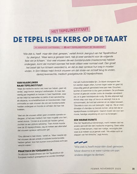In het november nummer 2025 op pagina 30-32: Tepelinstituut by Jeangout - De tepel is de kers op de taart.