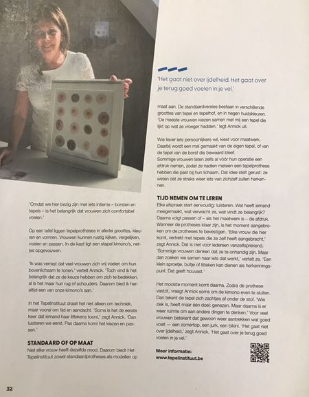 Annick opent eerste Vlaamse Tepelinstituut!!! Ik zie vrouwen met een tepelprothese meteen opfleuren.